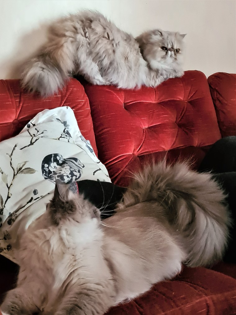 Han gillar att ligga och mysa tätt intill i soffan och verkar må riktigt bra.